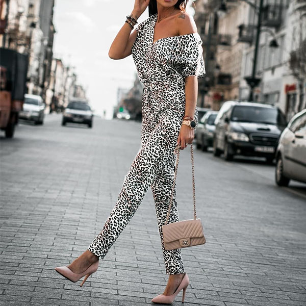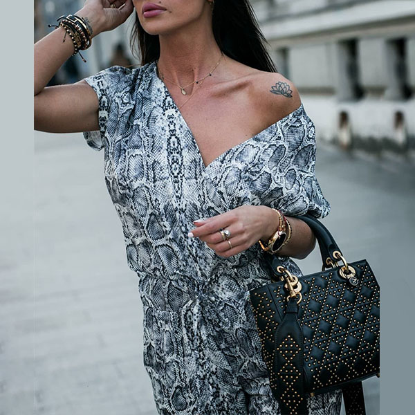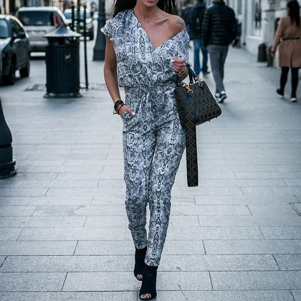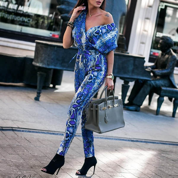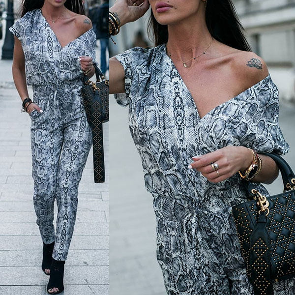 You can easily gain more eyes when you go out with this printed jumpsuit! Finished with short sleeve,v-neck and high waist design,this piece not only can showcase your slender figure,but also can enhance your feminine appeal. Let your style make the ultimate statement by wearing little piece.