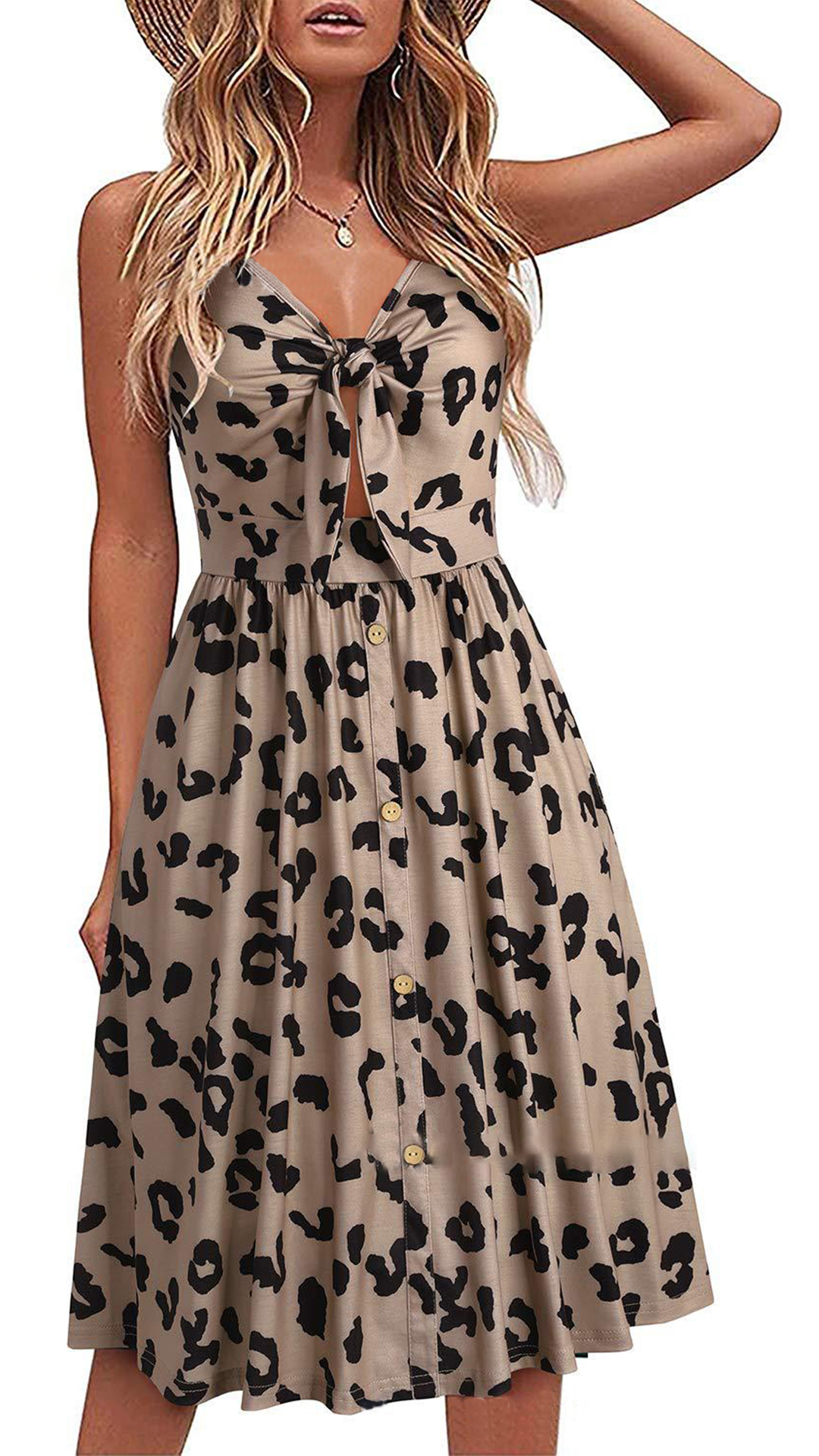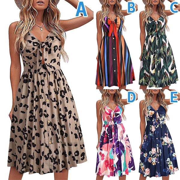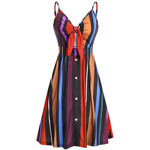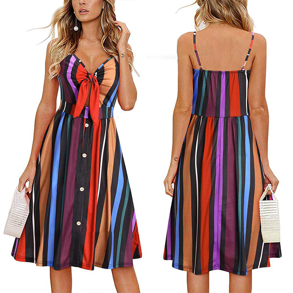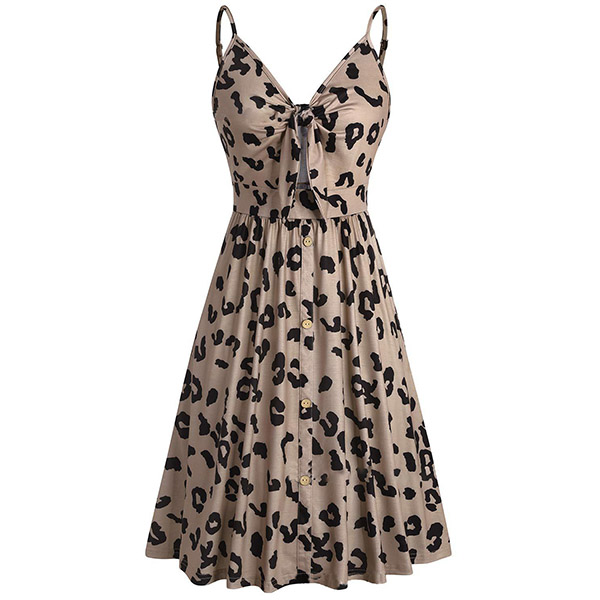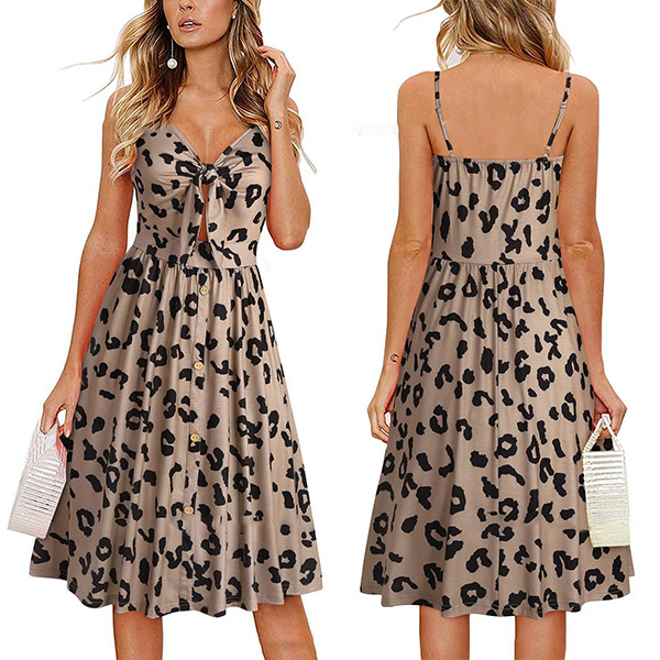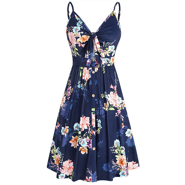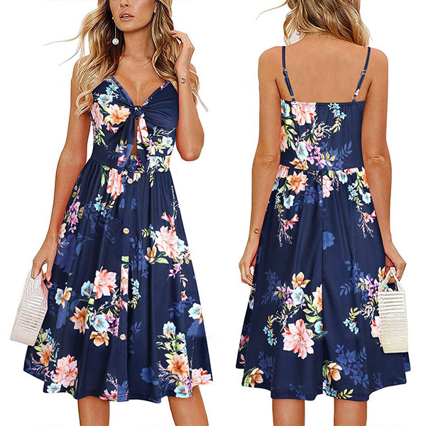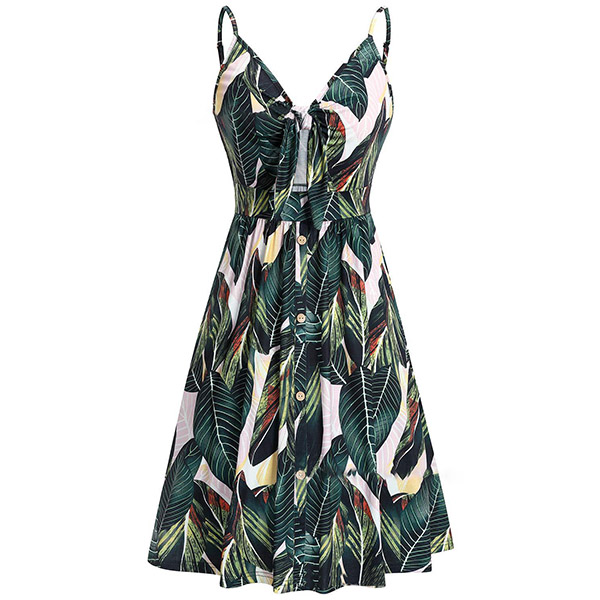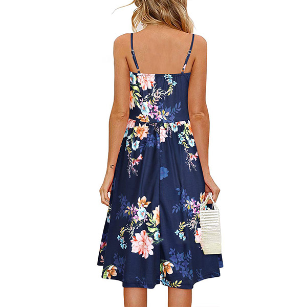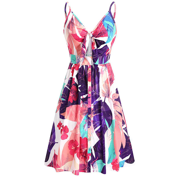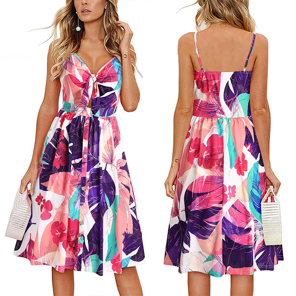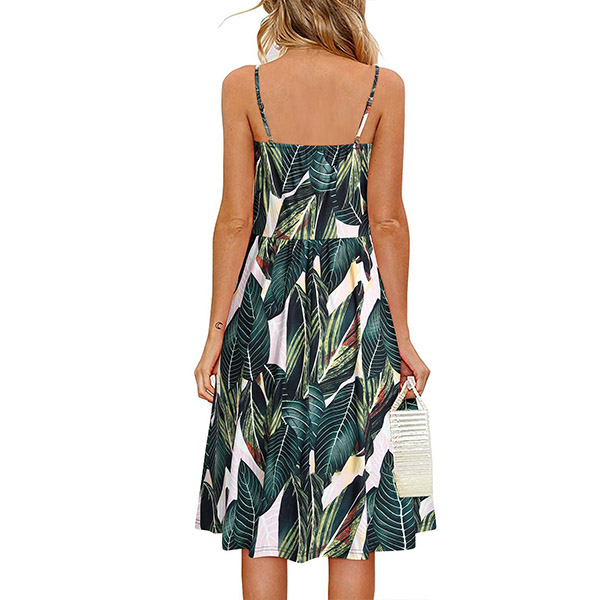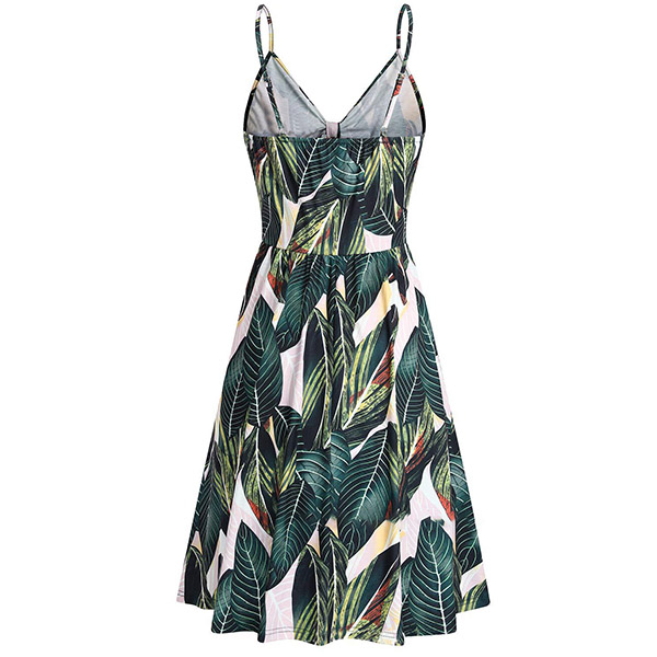 Greet the sun-soaked summer days with this dreamy and beautiful dress. Sling style,with backless,v-neck and high waist design,this dress not only can make you look alluring,but also can showcase your slender figure. And the chic,eye-catching printed details will help you gain more eyes. So why not take interest in it?