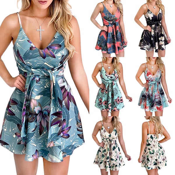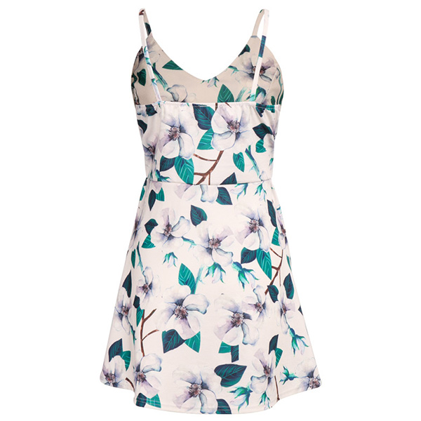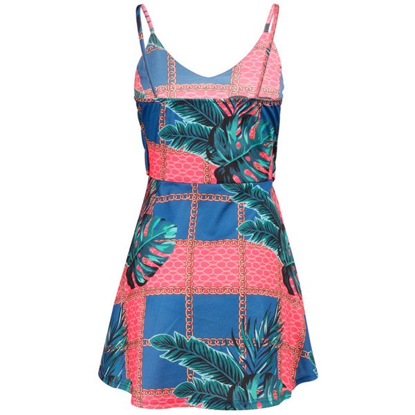 Embrace the sun-soaked summer days with this relaxed dress. The chic printed details make this piece look so eye-catching. Sling style,with backless,v-neck and high waist design,this dress not only can showcase your slender figure,but also can exude your sexy and alluring side. Dress it up with your sexy heels for a beautiful look.