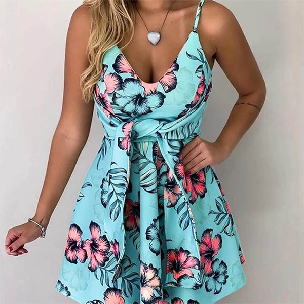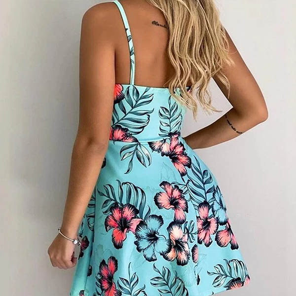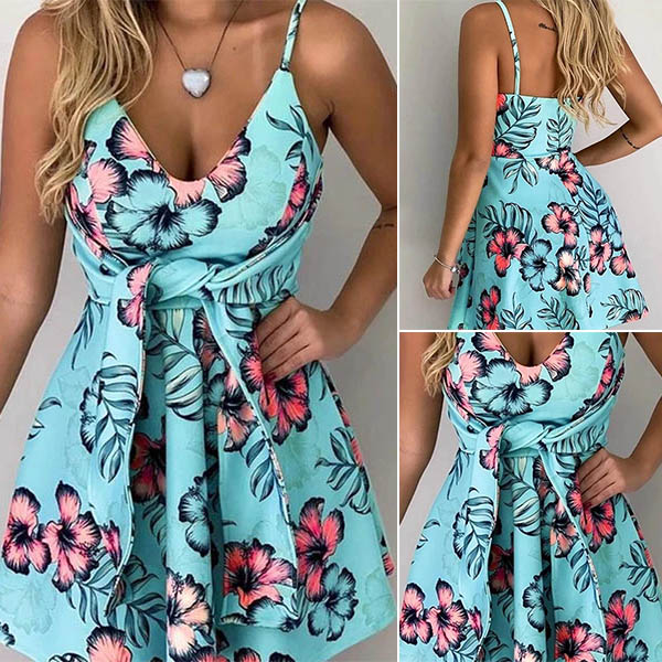 Just step out to greet the sun-soaked summer days with a delight dress such as this creation. Its vibrant floral print details can help you gain more eyes. Sling style,with backless,v-neck and high waist design,this dress can make you look alluring as well as showcase your slender figure. Add it to your summer wardrobe ensemble.