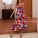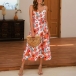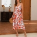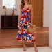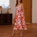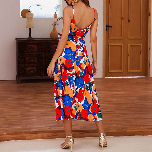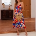 Sexy Backless V-neck High Waist Printed Sling Dress