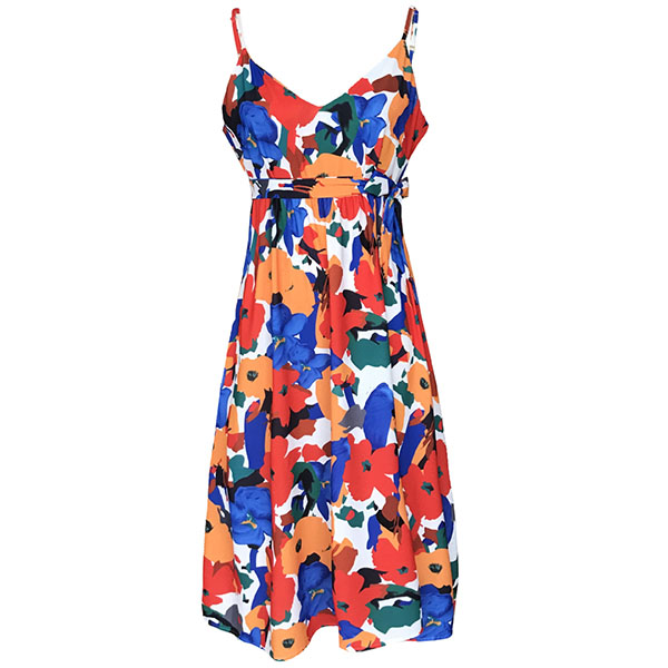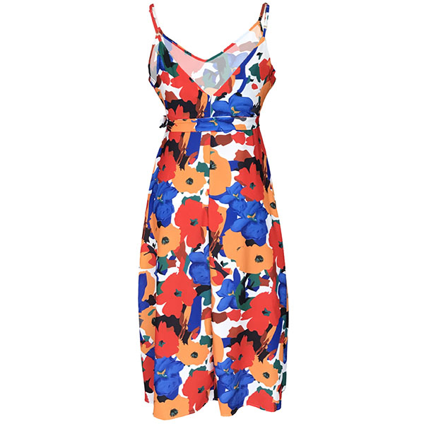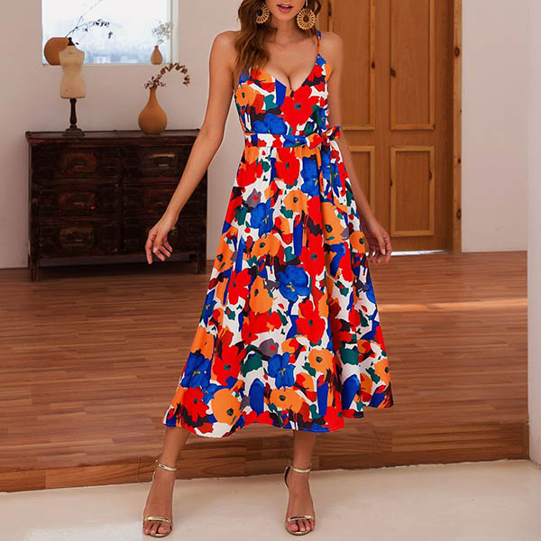 Enhance your feminine appeal on the weekends in the day time and transition to your date night with this dress. Sling style,with backless,v-neck and high waist design,this dress is sure to offer you an alluring look. Moreover,the colorful printed details will make this piece look more eye-catching. So why not enrich your wardrobe with this dress?