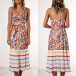 Sexy Backless V-neck High Waist Printed Sling Dress