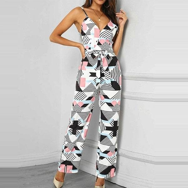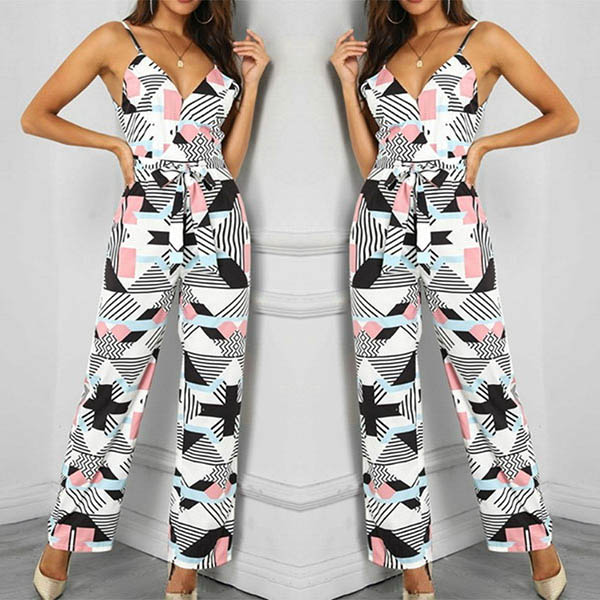 Sexy Backless V-neck High Waist Printed Sling Jumpsuit
