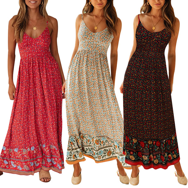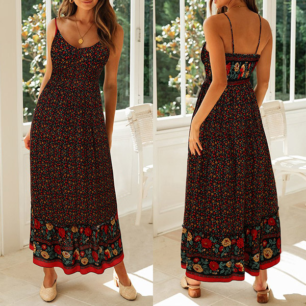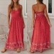 Sexy Backless V-neck High Waist Printed Sling Maxi Dress