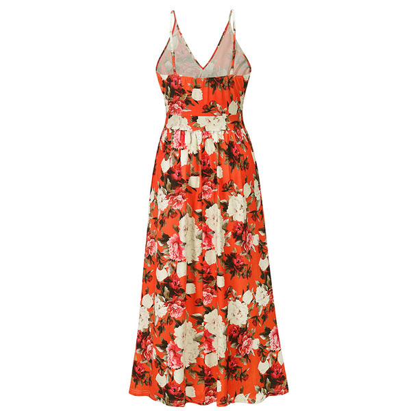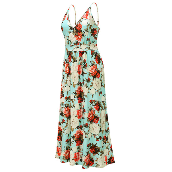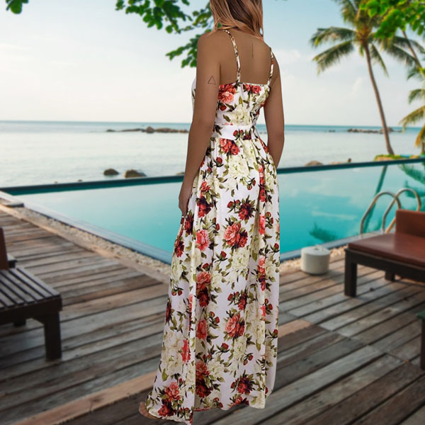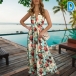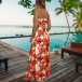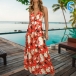Sexy Backless V-neck High Waist Printed Sling Maxi Dress