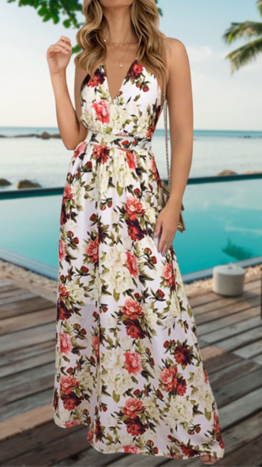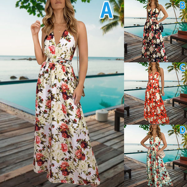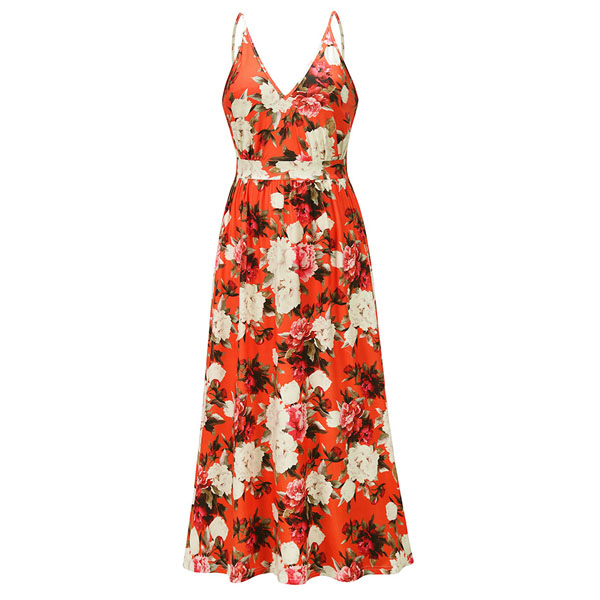 Enjoy your summer days with this dreamy and beautiful dress. Its vibrant and eye-catching printed details will help you gain more eyes. Sling style,with backless,v-neck,high waist and maxi length,this dress can showcase your slender figure as well as exude your alluring,flirty side. On these sunny days,adding a sweet straw hat would make you look more perfect.