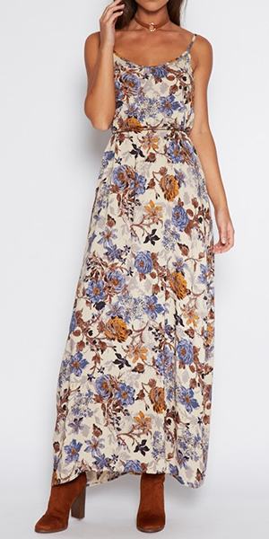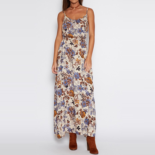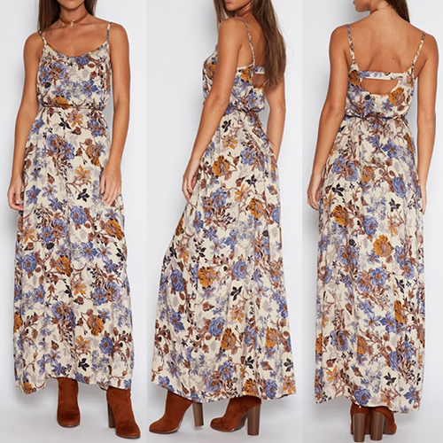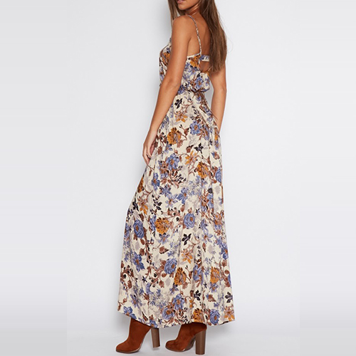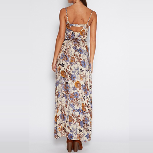vibrant floral print,with backless,v-neck and a maxi length,this sling dress makes it easy for you to look
