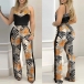 Sexy Backless V-neck High Waist Printed Sling Top + Pants Two-piece Set
