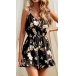 It is an easy thing to create a charming and beautiful summer look with the help of this romper. Its vibrant floral print details make this piece look so eye-catching. Sling style,with backless,v-neck and ruffle hem design,these details can offer you a more alluring look. For your beach days or weekend trips,this flirty piece would strike your mind.