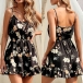 Sexy Backless V-neck High Waist Ruffle Hem Sling Printed Romper