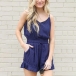 Embrace your summer days with this relaxed romper. Sling style,with backless,v-neck and high waist design,this piece not only can showcase your slender figure,but also can exude your sexy and flirty side. So why not take interest in it?