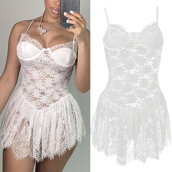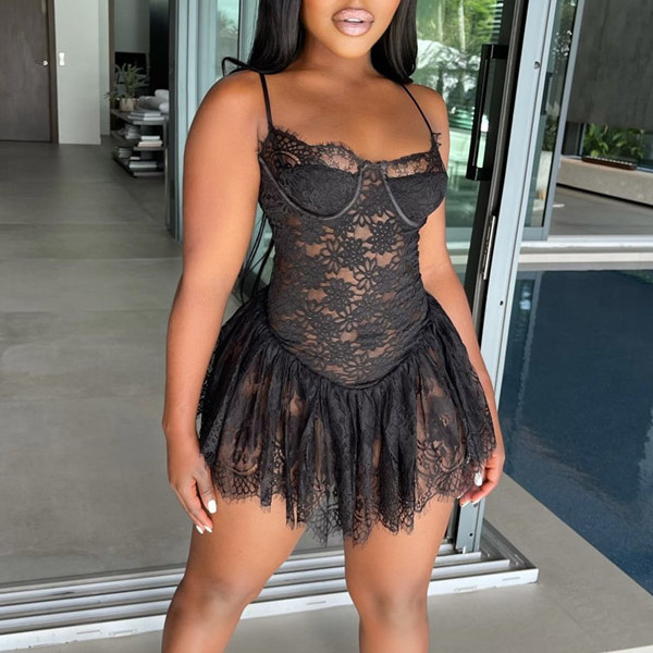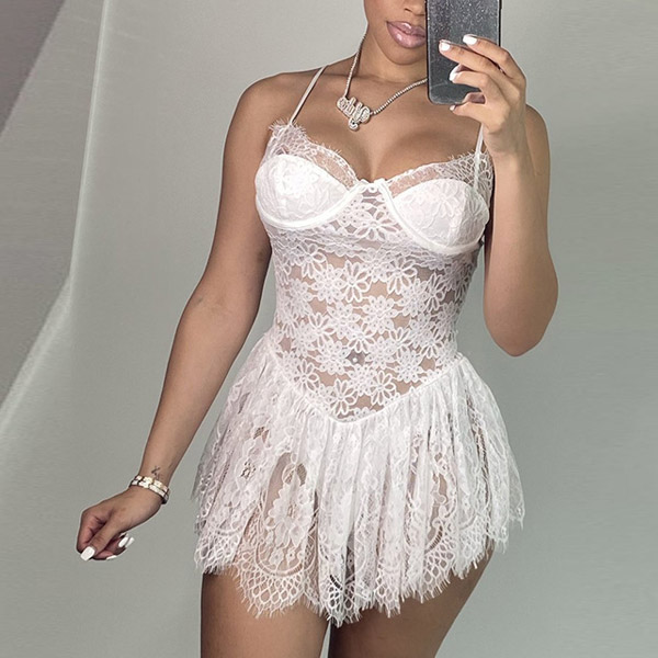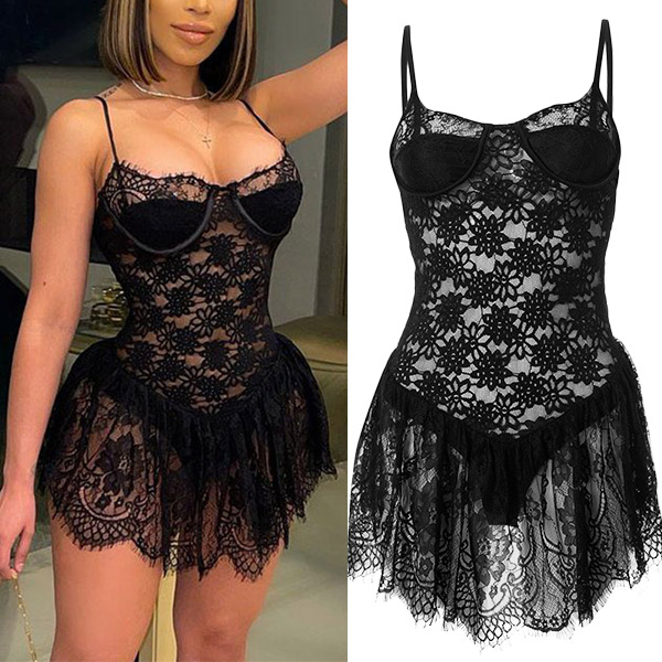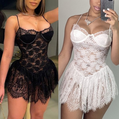 Wow,how could you look so sexy and alluring when you are in this dress. Sling style,with backless,v-neck and see-through lace details,these design details can expose your charming feminine side. No matter when and where you are,you can easily be the focus in this little stunner!
