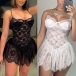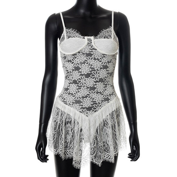 Sexy Backless V-neck High Waist See-through Lace Sling Dress