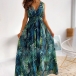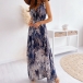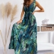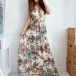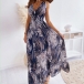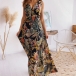 Sexy Backless V-neck High Waist Sleeveless Printed Maxi Dress