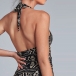 There is no doubt that you can win more eyes when you don this dress. Halter style,with backless and deep v-neck design,sexy yet alluring,while the chic printed details will help you catch more eyes,and the fit silhouette design ca showcase your slender figure. For your night events,you can trust in this piece to express your beauty and charm.