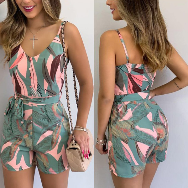 Wanna try a different summer style? Then let this romper help you. Sling style,with backless,v-neck and chic printed details,this piece can make you look sexy,eye-catching and charming. Meanwhile,the high waist and fit silhouette design can showcase your slender figure. So why not take interest in it?