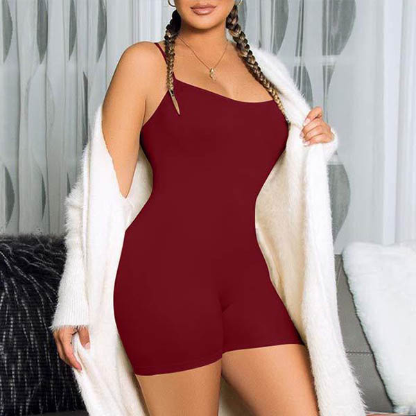 Seductive appeal can come easily once you slip into this romper. Sling style,with backless and v-neck design,which can offer you a more alluring look,while the high waist and tight silhouette design can flaunt off your seductive curve. You can just slip into this piece to express your beauty and charm.