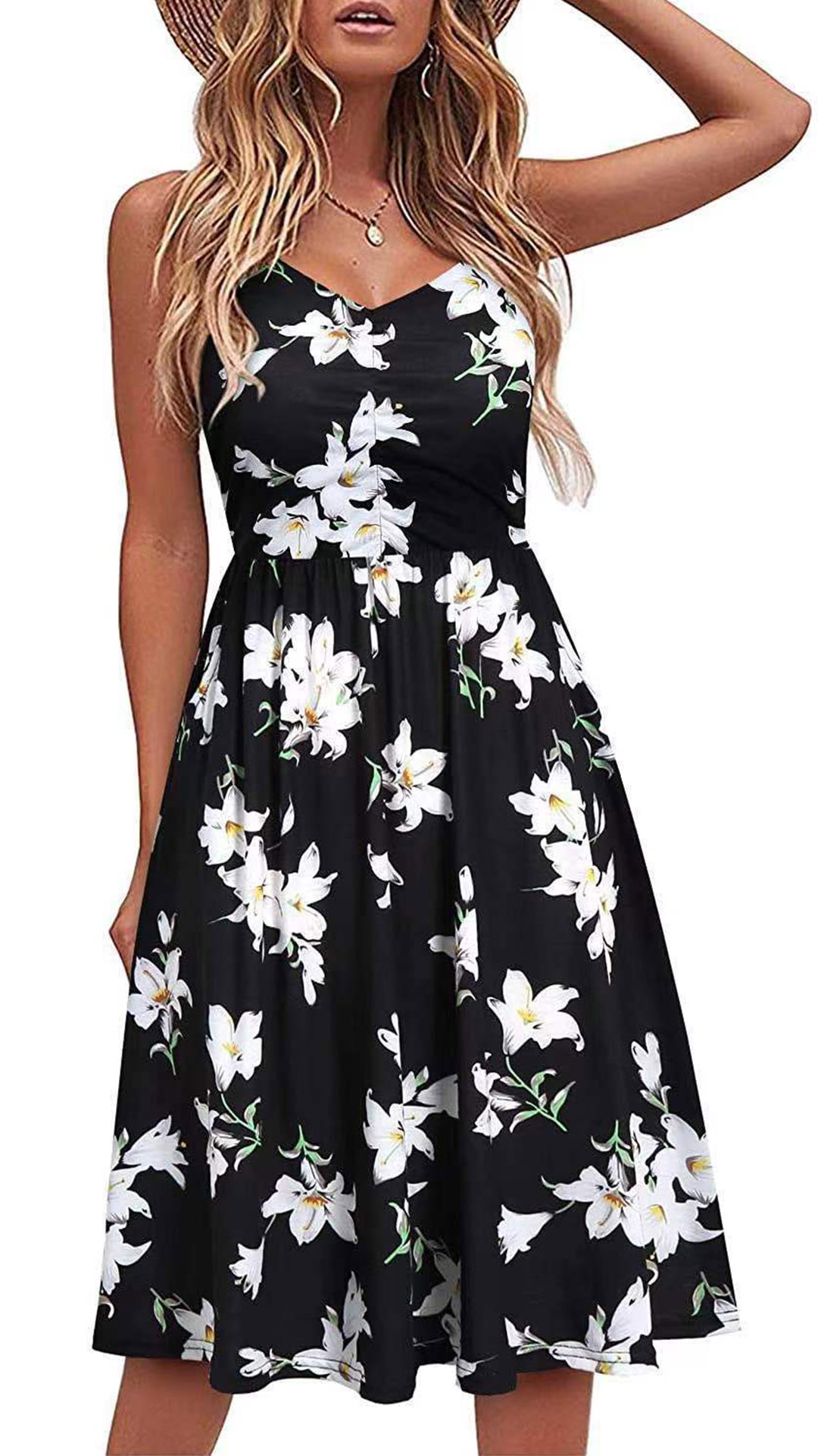 Make your summer wardrobe more complete by adding this sling dress. The backless and v-neck design will lend you a dash of sexy and flirty vibes,while the high waist design can portray your slender figure. No matter for your daytime out or night dating,this dress can be your wise choice.