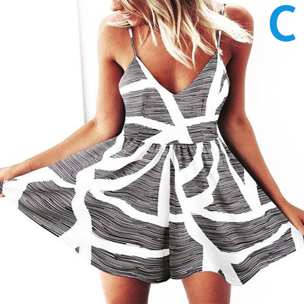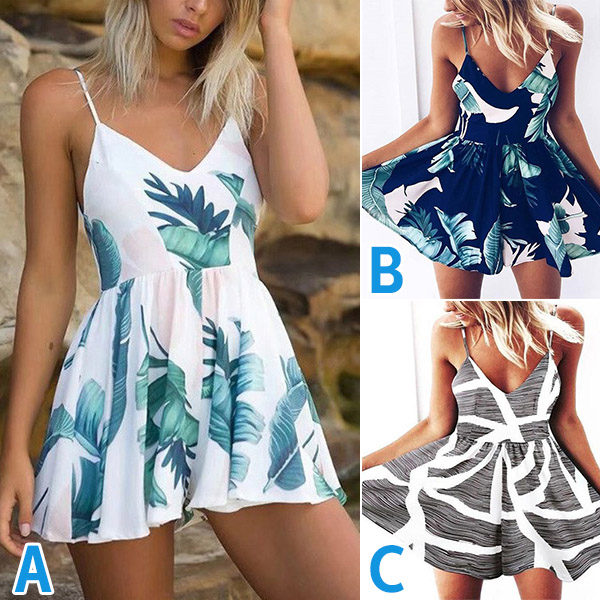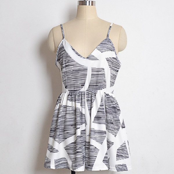 Except for the dresses,this romper can be your another choice in these summer days. Sling style,with backless,v-neck and high waist design,this piece not only can showcase your slender figure,but also can exude your alluring side. Moreover,the chic printed details will make this piece look more attractive. Just slip into this piece to enjoy your summer days.
