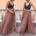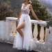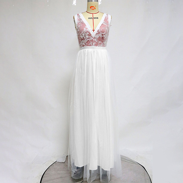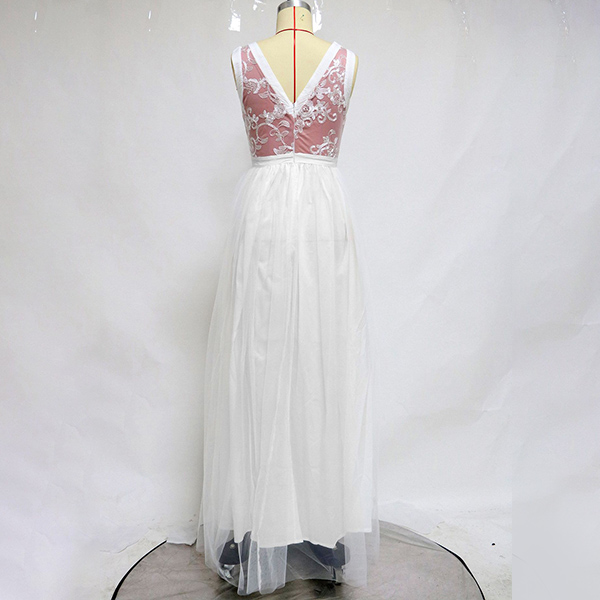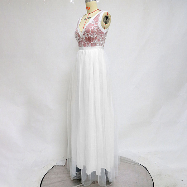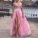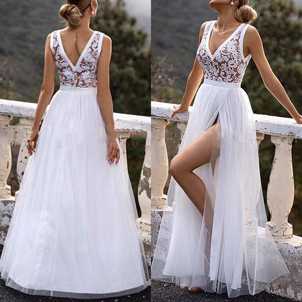 Sexy Backless V-neck High Waist Slit Hem Lace Spliced Party Dress