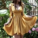 Sexy Backless V-neck High Waist Solid Color Dress