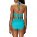 As for your beach trip,this cozy yet sexy bikini set is worth to have a place in your luggage. Solid color style,including a backless v-neck halter bikini top and a high waist bikini bottom,this bikini set can flaunt off your charming skin and seductive curve.