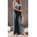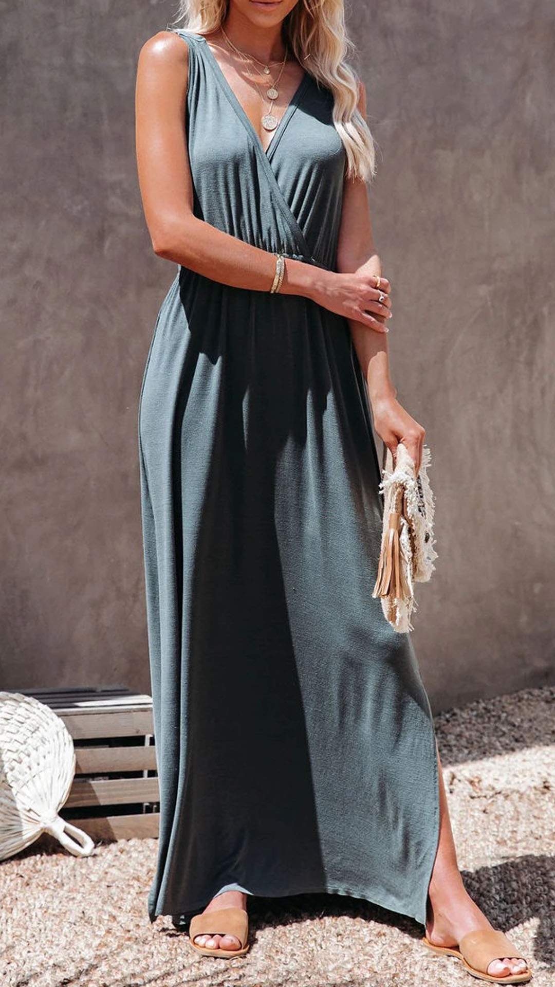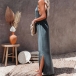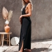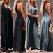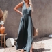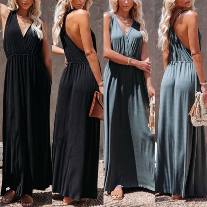 Sexy Backless V-neck High Waist Solid Color Halter Maxi Dress