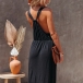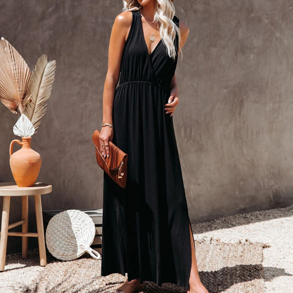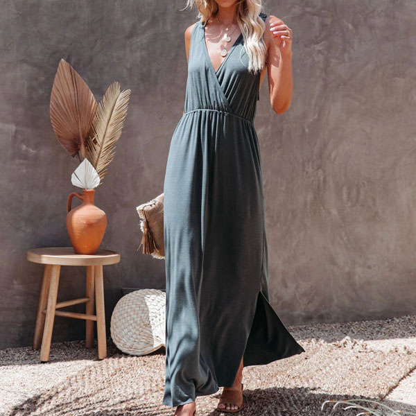 Take an interest with this dress to give your wardrobe a seasonal update. Unique halter,v-neck,backless and slit hem design make this piece look so sexy and alluring. Comes with a solid color,the high waist and maxi length design can better showcase your slender figure. No matter for your beach days or weekend trips in these summer days,this dress can be your perfect partner.