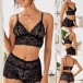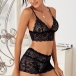 Sexy Backless V-neck High Waist Solid Color Lace Underwear Lingerie Set
