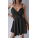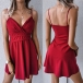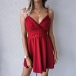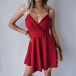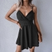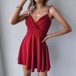Sexy Backless V-neck High Waist Solid Color Sling Dress