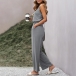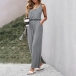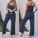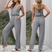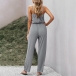 Combinaison Sexy à Cretelles de Couleur Unie à Taille Haute et Dos Nu