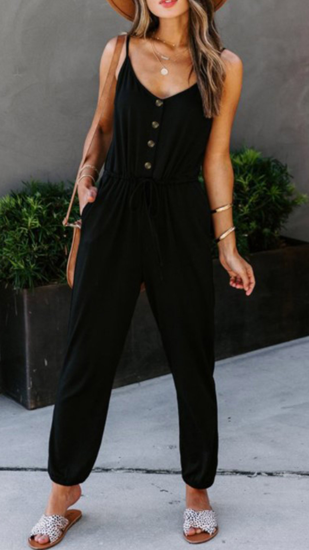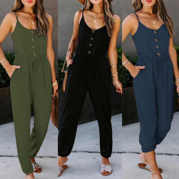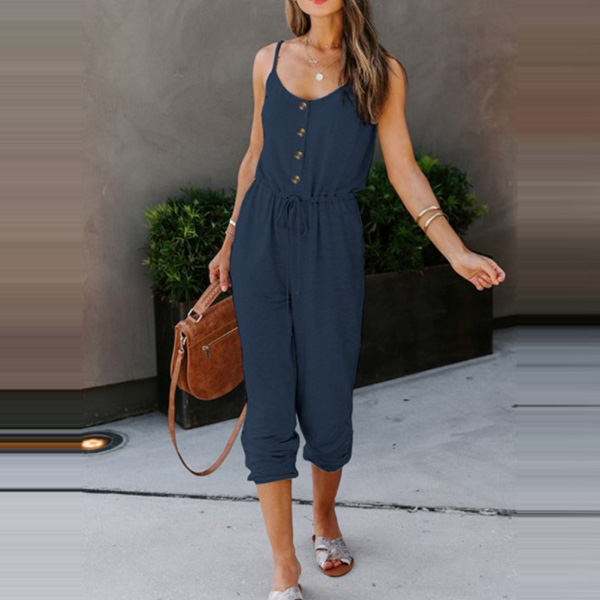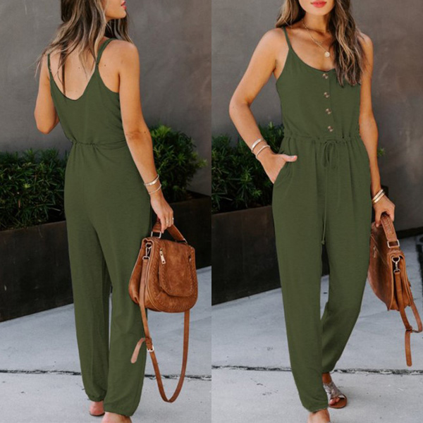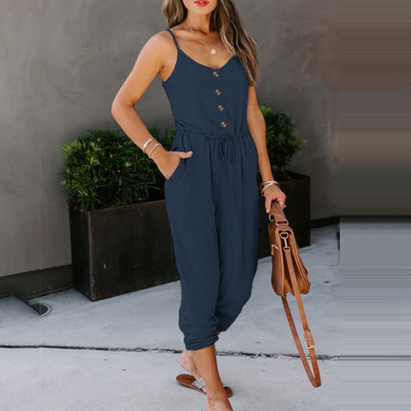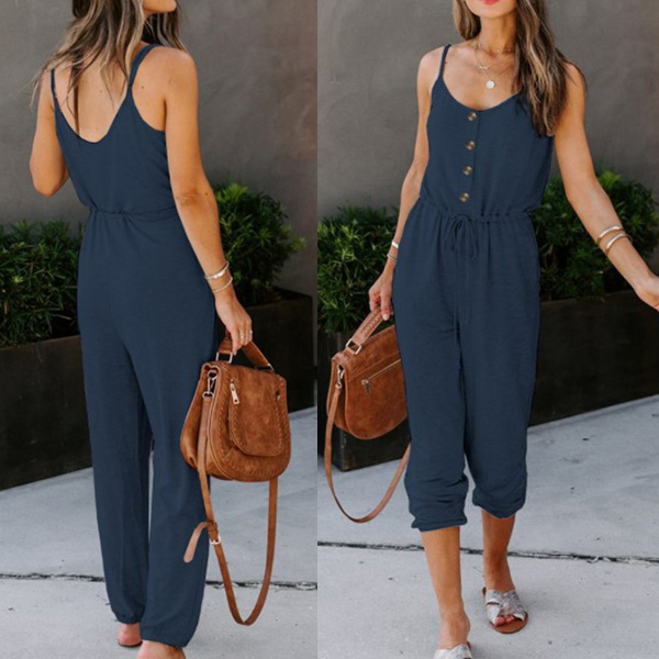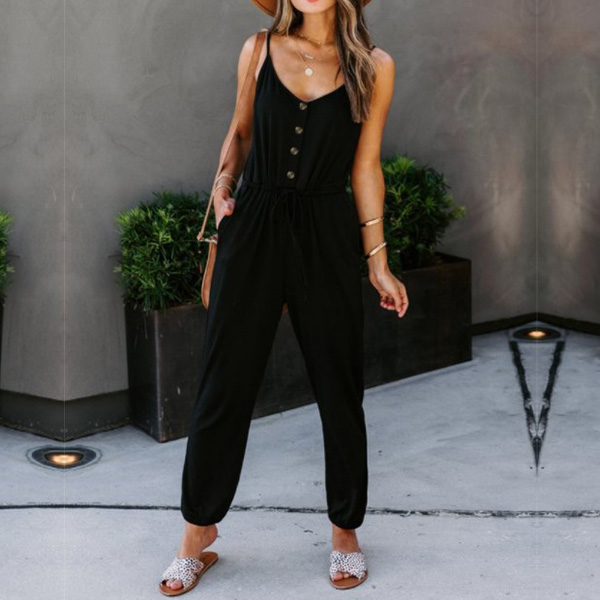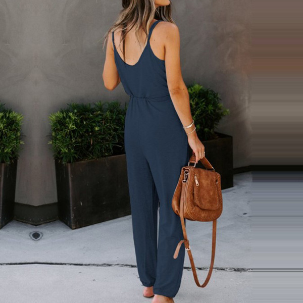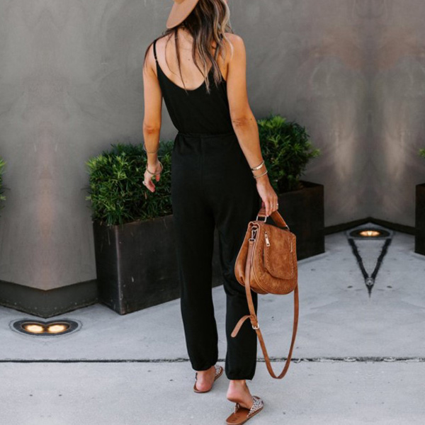 Looking effortless stylish on your casual days has always been easy with jumpsuit! Sling style,with backless and v-neck design,these details will offer you a more alluring look,while the high waist and clean silhouette design can showcase your slender figure. Like this style? Then invite this piece to your wardrobe!