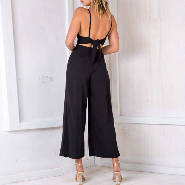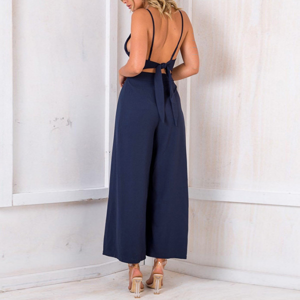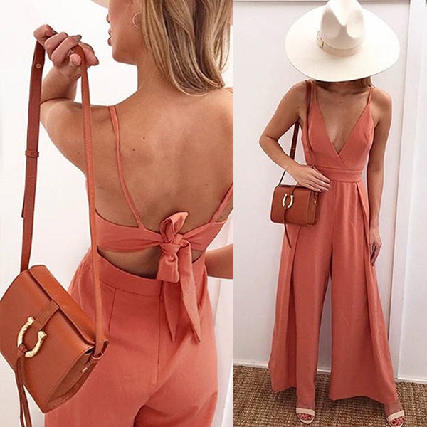 Walk on the streets with your charming femininity portrayed when adorning a jumpsuit such as this creation. It comes with a solid color,the high waist and clean silhouette design can showcase your slender figure. Sling style,with backless and v-neck design,this piece also can showcase your alluring side. So why not take interest in it?