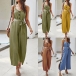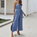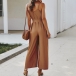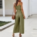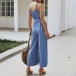Sexy Backless V-neck High Waist Solid Color Sling Jumpsuit