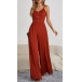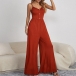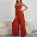 Sexy Backless V-neck High Waist Solid Color Sling Jumpsuit