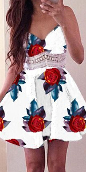 v-neck and hollow out lace spliced design makes it look more sexy and sultry. Weekend seaside