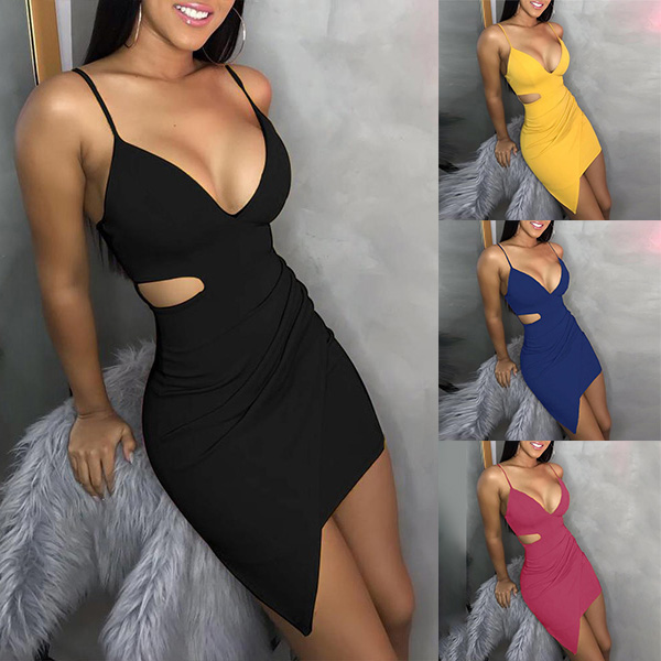 Like the saying goes, if you have it why not flaunt it? Seductive appeal comes easy once you slip into this breathtaking dress. Sling style,the backless,v-neck,hollow out high waist and irregular hem design will offer you a more alluring look,while the tight silhouette design can portray your seductive curve. Save this piece for your fancy events!