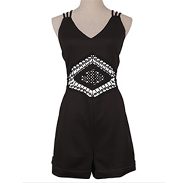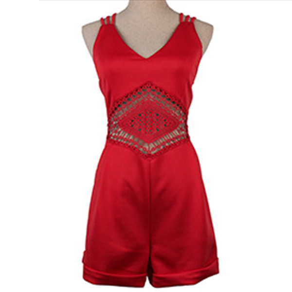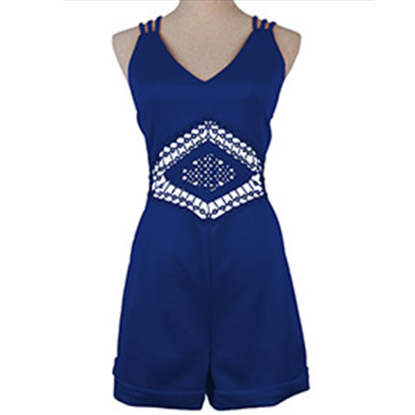 designed with backless,v-neck and hollow out lace spliced design,this romper of course can give you a charming look.