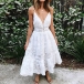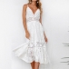 Sexy Backless V-neck Hollow Out Lace Spliced Sling Dress