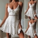 When you wanna expose your charming skin and seductive femininity,you can just turn to this dress for help. Sling style,with backless,v-neck and hollow out lace spliced details,this dress is sure to make you look flirty and alluring. For these sun-soaked summer days,this dress is a good chance to express your beauty and charm.