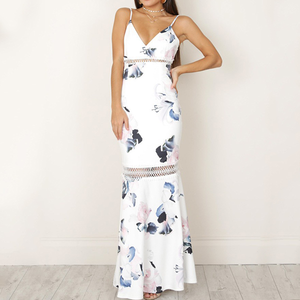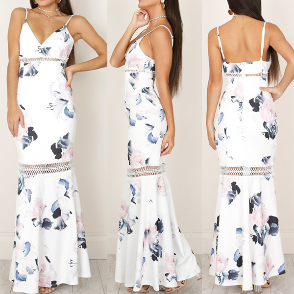 deep v-neck,a maxi length and hollow out details,sexy and alluring. Moreover,its vibrant floral print makes it more