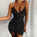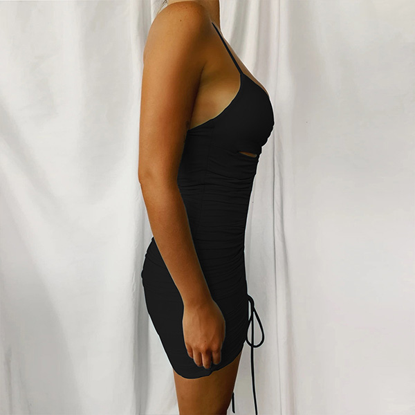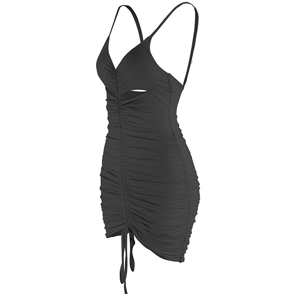 You are sure to be the focus when you don this dress. Sling style,its alluring design details like backless,v-neck,hollow out and drawstring design make this piece look so sexy and flirty. The tight silhouette design can portray your seductive curve. For your night events,this little stunner is a perfect solution to make you stand out.