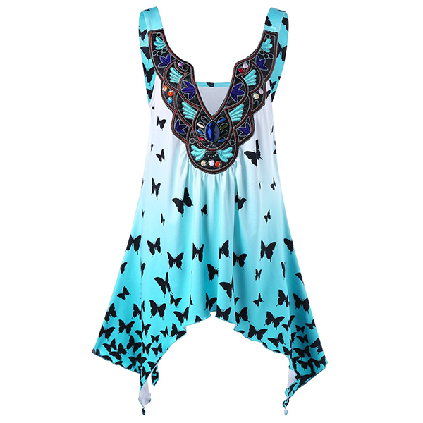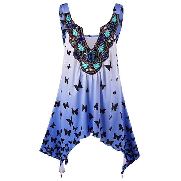 You would be like a beautiful butterfly once you slip into this sleeveless dress. Its vivid butterfly printed pattern design makes