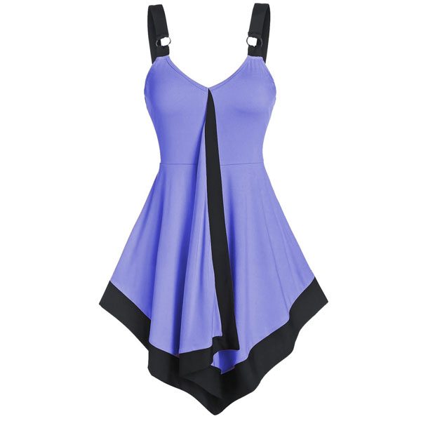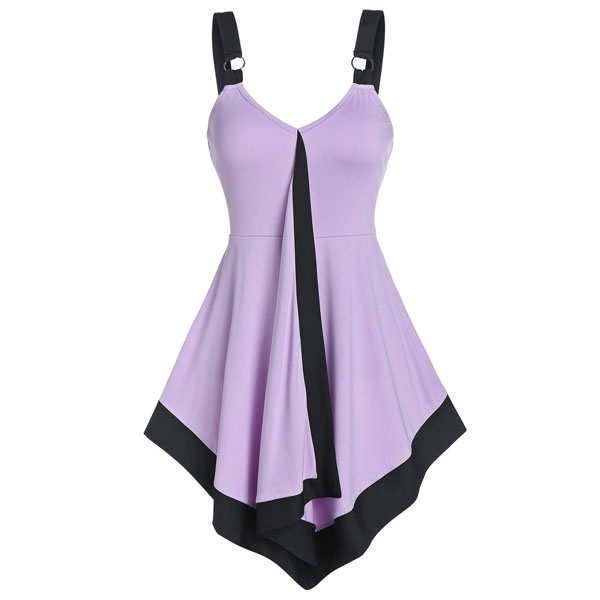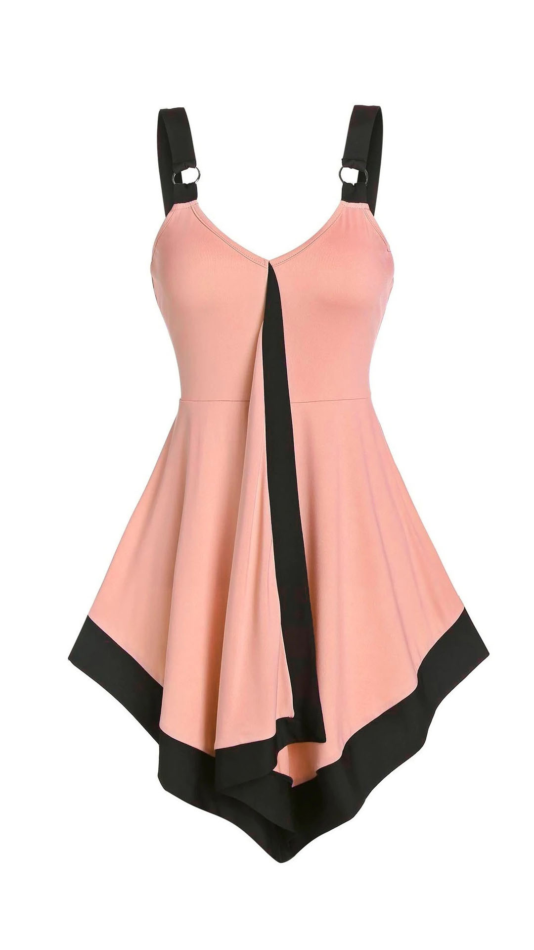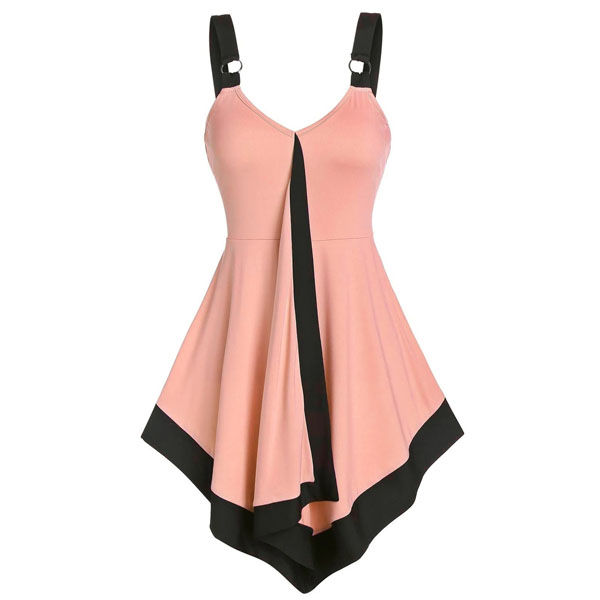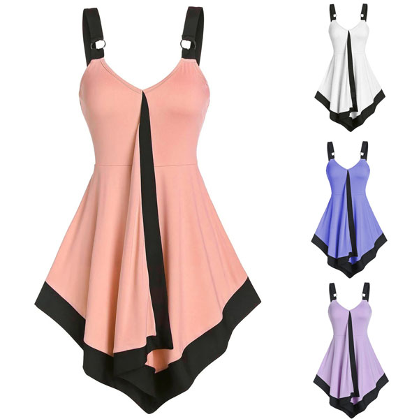 As for the hot summer days,this cozy yet sexy top can easily strike your mind. Contrast color design will add some more appeal. Sling style,with backless,v-neck and an irregular hem,this piece not only can keep you cool and comfortable all the day,but also can e your sultry yet flirty side.