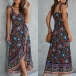Sexy Backless V-neck Irregular Hem Printed Sling Dress
