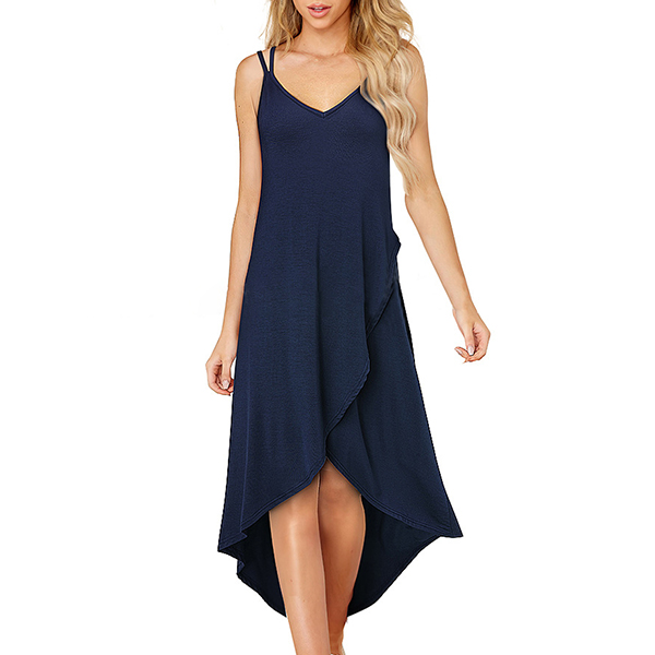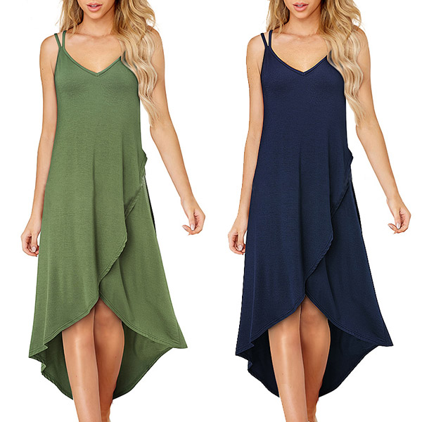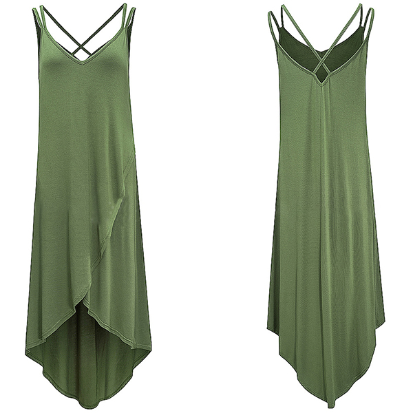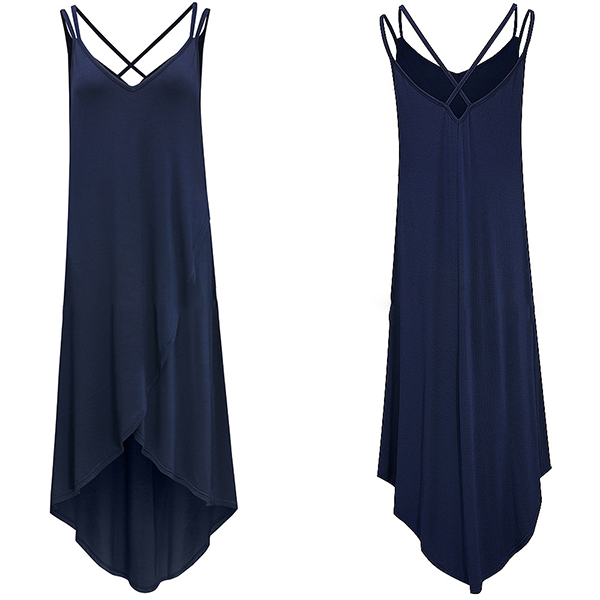 Create a sassy and stylish look with the flirty details of this dress. Sling style,with backless,v-neck and an irregular hem,this dress definitely can express your charm and personality. For these hot summer days,this piece is worth to be your wardrobe staple.