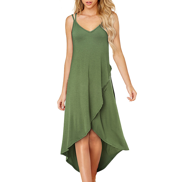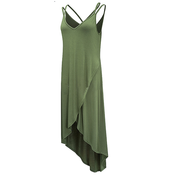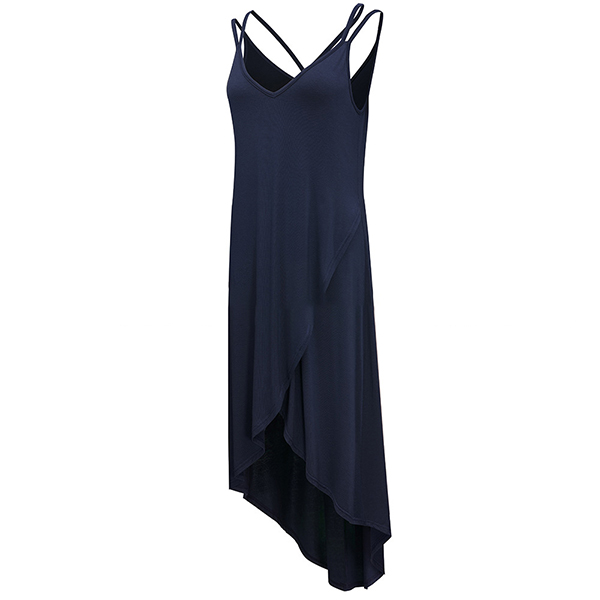 Sexy Backless V-neck Irregular Hem Solid Color Sling Dress
