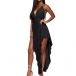 Sexy Backless V-neck Irregular Hem Solid Color Sling Dress