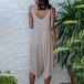 Your chic style and personality can have a full display when you wear this romper. Sling style,with backless and v-neck design,which can lend you a dash of sexy and flirty vibes. What's more,the irregular hem and wide-leg silhouette design make this piece look more distinctive and attractive. You ca easily win more eyes when you wear this piece.